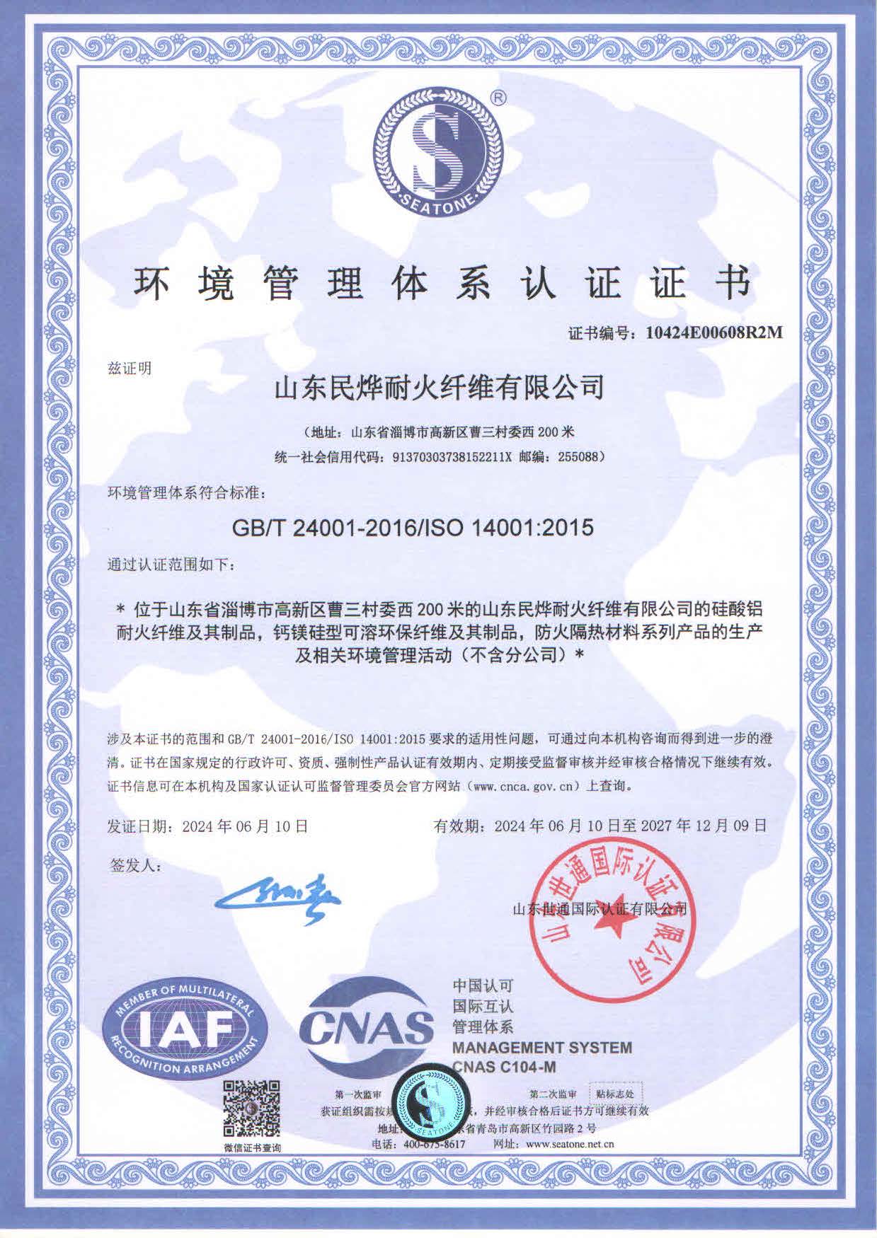 • 2024年環境體系認證證書